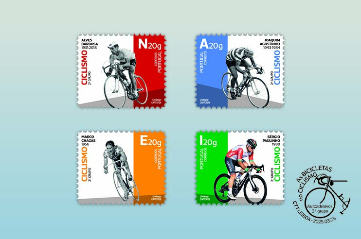 Mais do que um desporto, o ciclismo faz parte da memória coletiva portuguesa — uma história de resistência, superação e identidade que une gerações. Essa herança ganha nova expressão com a emissão de selos dedicada a ciclistas que marcaram o ciclismo nacional nos séculos XX e XXI, cada um representando um capítulo de esforço e glória.